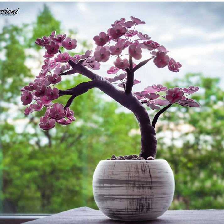 Bonsaj růžová vyrobená z polystyr. materiálu (jednorázové boxy), krásná dekorace do interiéru, která dlouho vydrží :-)