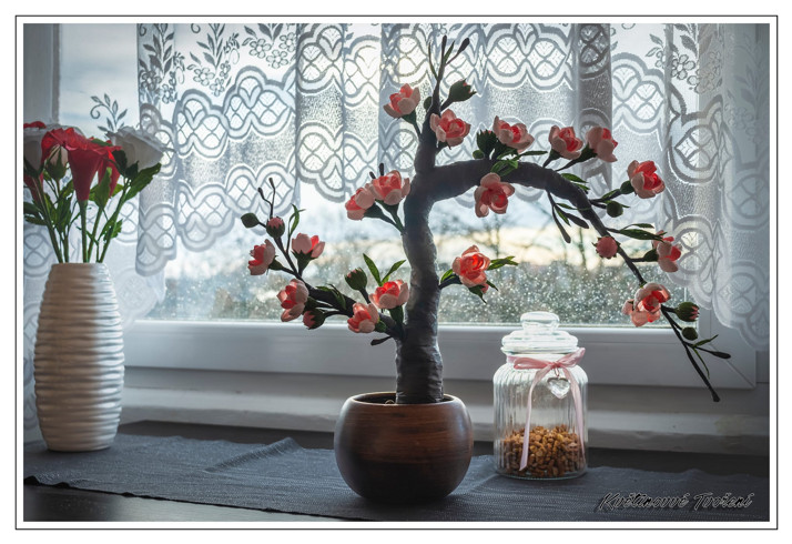 Bonsaj z italského krepového papíru, ruční výroba, krásná dekorace do interiéru :-)