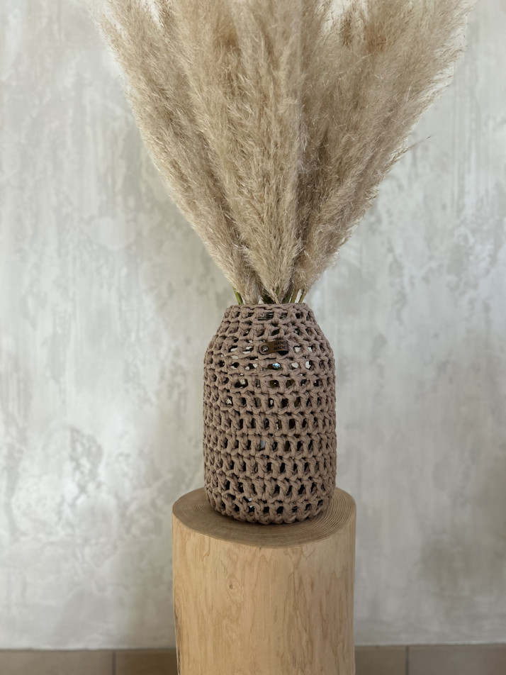 Váza na suché nebo řezané květiny, lze použít i jako svícen, uvnitř skleněná. Obsah 5 litrů, výška 37cm ,