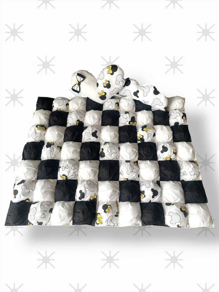 Dětská hrací deka nebo možno přikrývka s polštářky. Výplň duté vlákno.