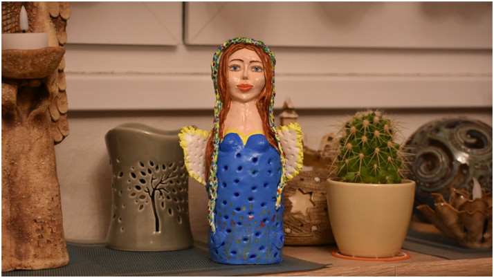 vyrobeno ze samotvrdnoucí hmoty a malováno akrylovými barvami