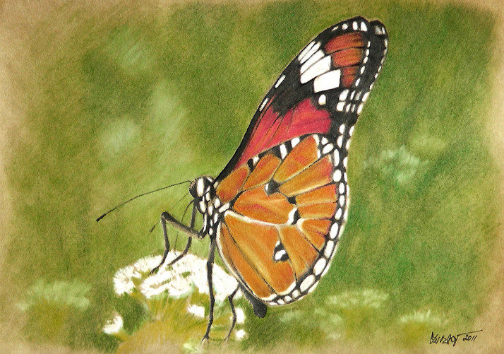 kresba pastely a tuší na tabákovém papíře A3