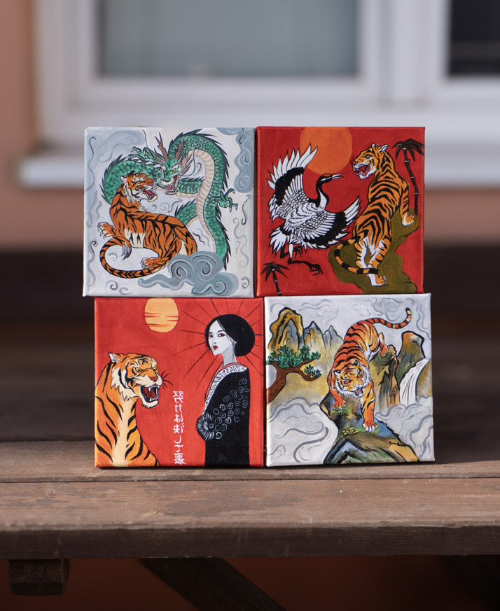 Kolekce se symbolickými obrazy vhodná pro interiérové akcenty. Lakovaná pro zachování syté barvy.20х20