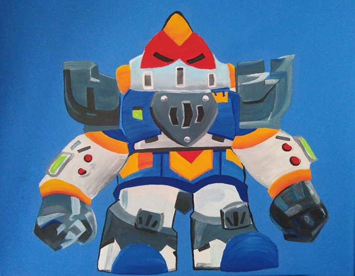 obraz, robot Surge z Brawl Stars, akryl na plátně 40x50, synkovi do pokojíčku