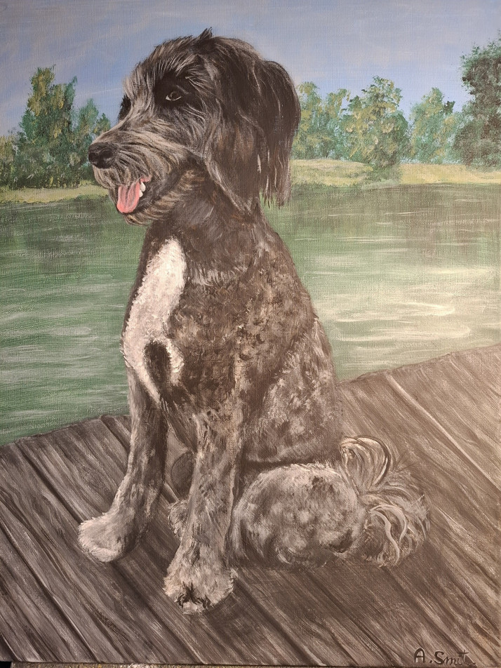 obraz, pes, labradoodle, 40x50, akryl na plátně.