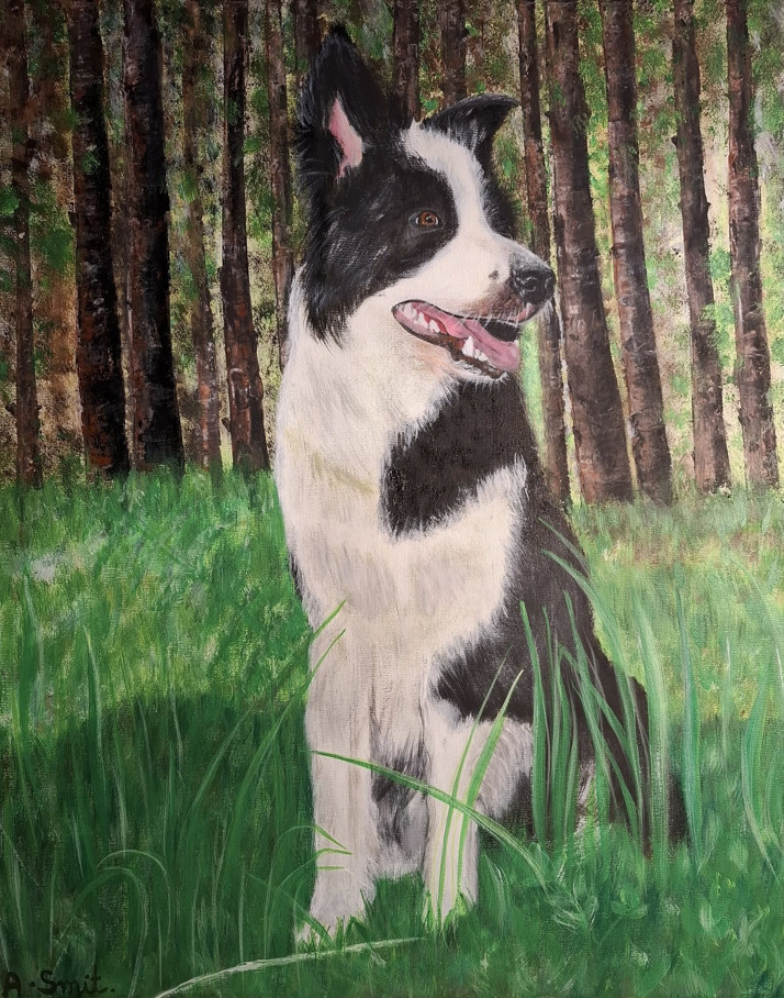 obraz, Border Colie, 40x50, akryl na plátně. Darováno.