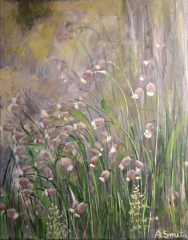 Luční kvítí, Silenka nadmutá, bylina z čeledi hvozdíkovitých, akryl na plátně. 24x30. Volné k prodeji. Cena 1500kč.