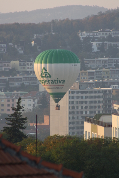 A tady už balónek pěkně klesá k domečkům. Potom už mi zmizel za domy. :)