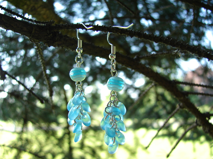 Náušnice ve tvaru vína (hrozna) z malých modrých kapiček. Háčky do uší jsou postříbrené ale je možnost udelat je ze stříbra. Pak jsou ale o neco dražší :)