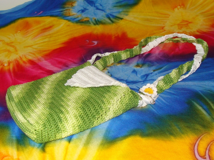 první pokus o háčkovanou kabelku, taková improvizace z příze nalezené v šupleti