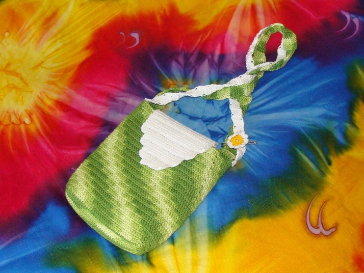 první pokus o háčkovanou kabelku, taková improvizace z příze nalezené v šupleti