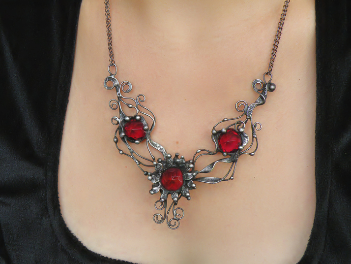 české broušené sklo, cín, cínovaný drát...výrazný náhrdelník vhodný pro slavnostní příležitost i všední den, když chcete upoutat pozornost. V mém obchůdku k němu najdete i prsten.
