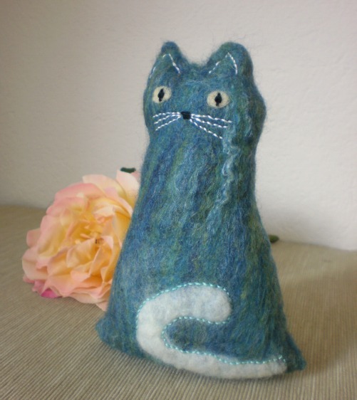 Plstěná kočička z vlny merino jde dnes gratulovat Zuzance ke 3. narozeninám, mňau!