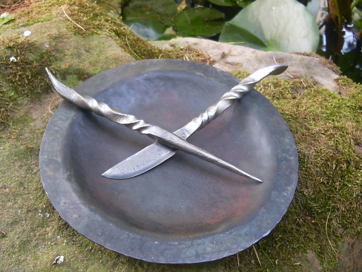 Kovaný příbor z nástrojové oceli 19191 a kovaný talíř