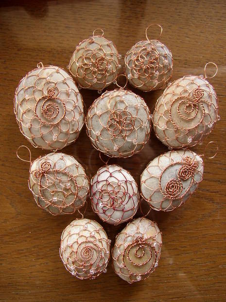 Drobné dárky kamarádkám vytvořené z mořských oblázků, měděných drátů a perliček (či korálků - jak tomu říkáte)