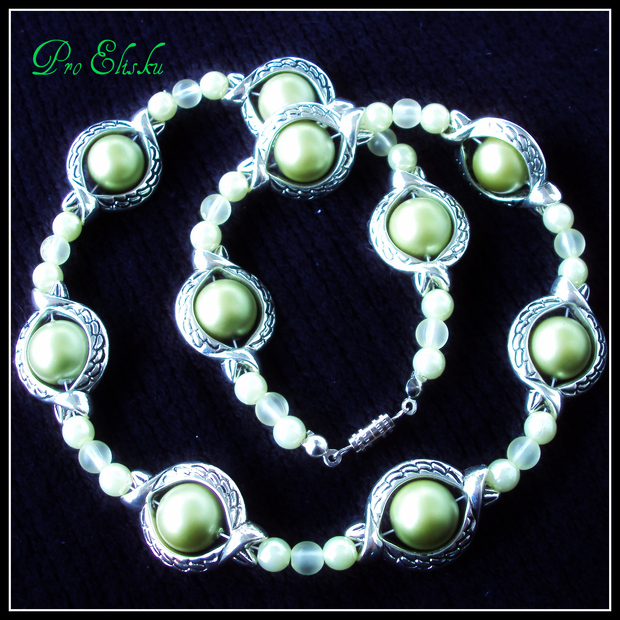 Náhrdelník z olivových perliček různých velikostí a pokovených plastových dílků - velmi elegantní, hodí se do společnosti