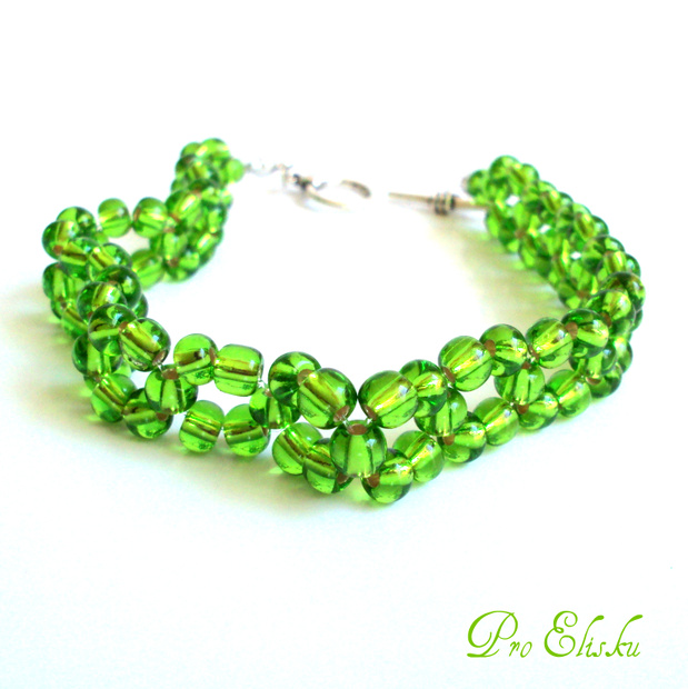 Náramek z krásného průsvitného rokajlu v zářivé zelené + americké zapínání.