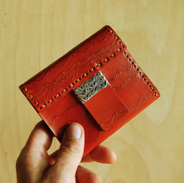 ...oranžovo-hnědá peněženka se stříbrným kováním