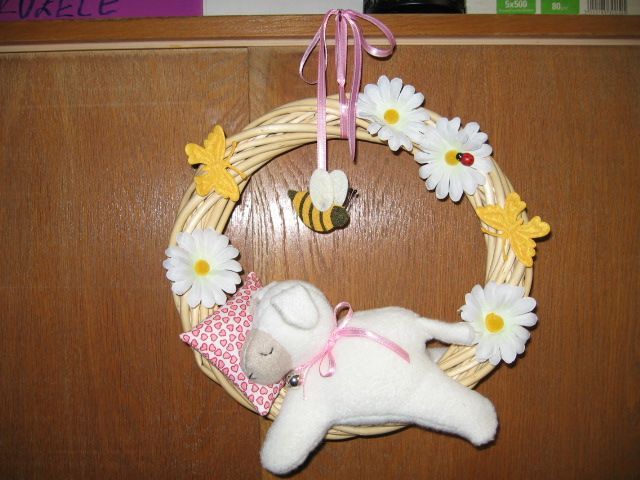 ...věneček se spící ovečkou. Ovečka je ručně šitá, plněná dutým vláknem.