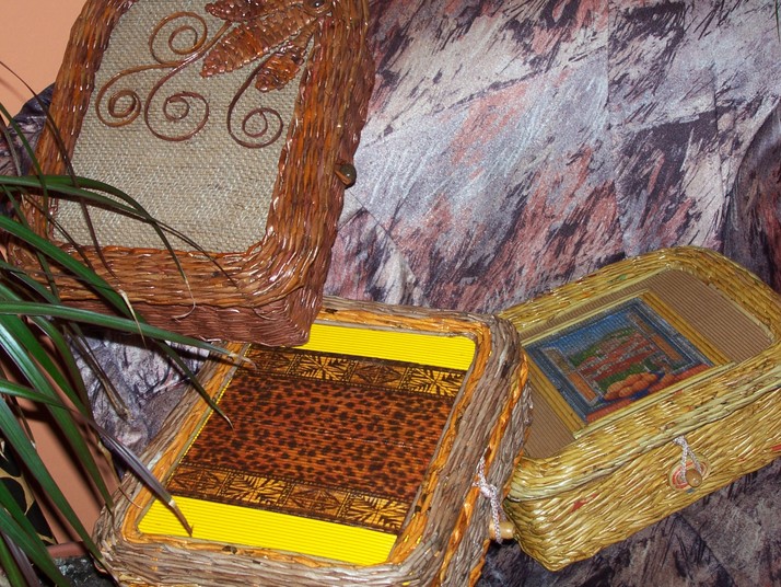 3 x krabice pletené z papaírových ruliček