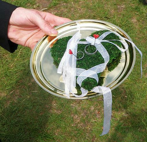 Něžné mechové srdce pod prstýnky na svatbě u Megulky.