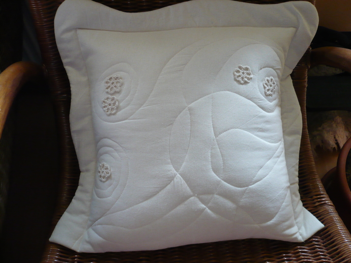 Obliečka na vankúšik,vyrobená z bavlny,plastická šitá aplikácia,dozdobená háčkovanými kvetinkami