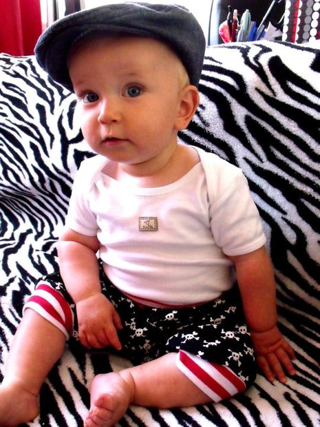 Maličký Kubíček (11 měsíců) v RARA lebkových kaťatech / kraťasech, ach <3