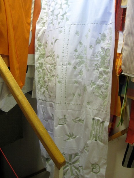 ... pár dní necháme sušit - zábradlí výborně poslouží ... a pak obarvit v indigové lázni, vyprat, vyžehlit a můžeme stříhat a šít ...