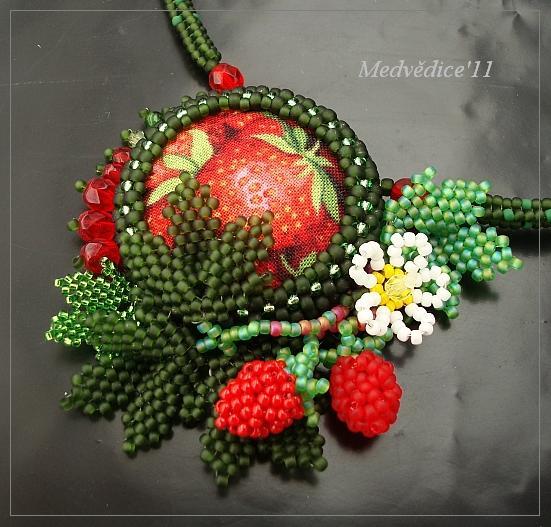 obšitý buttonek od bijioux a k tomu nějaké šité jahůdky :)