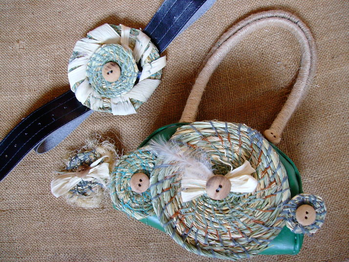 Soubor modních doplňků vytvořených z přírodních materiálů, recyklovatelných a vintagových věciček.