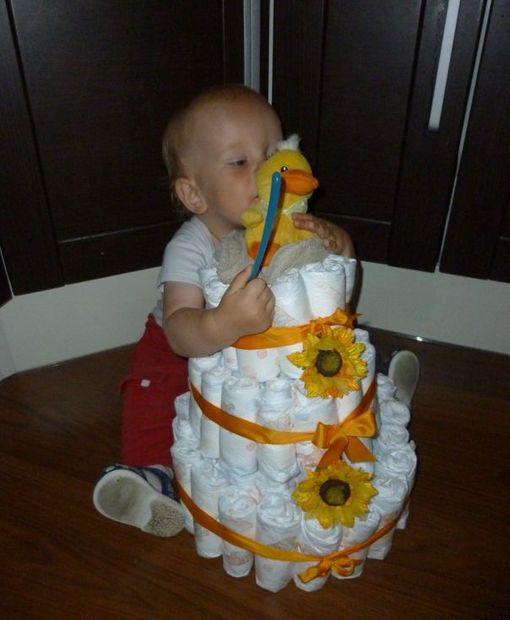 Zde je můj syn Šimon, který tak rád omrkne každý můj plenkový výtvor, co má na tu chvilinku při focení. :-)
