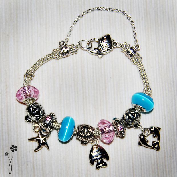 Bohatě zdobený šitý pandora náramek ze stříbrného rokajlu TOHO vel. 15