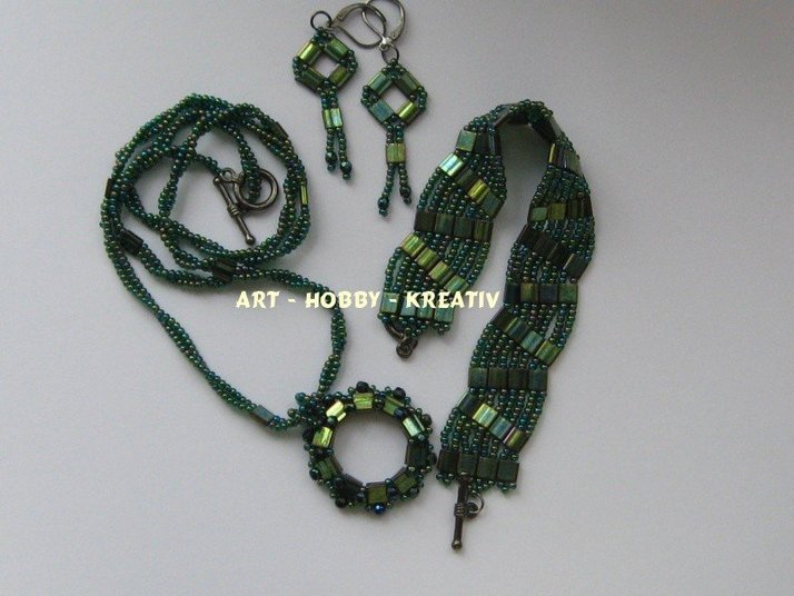 Trojkombinace z japonských kostiček TILA a TOHO 11/0 doplněné zapínáním v barvě antracitové.