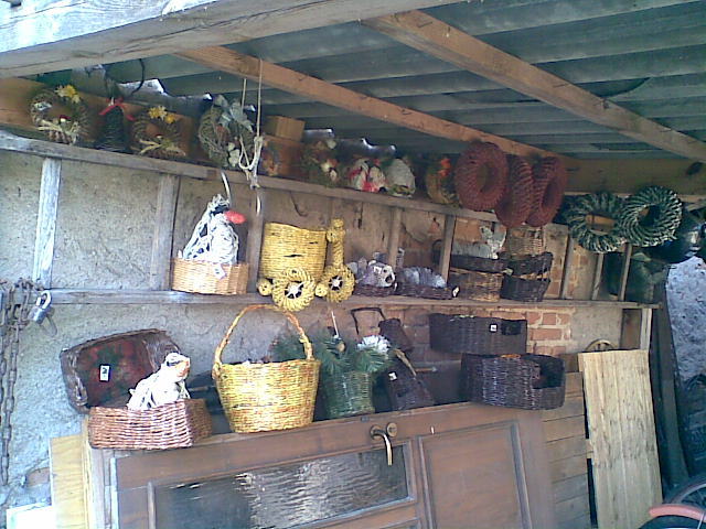 venku, v koutku u pily, pod přístřeškem, v jakémkoli počasí. Natlučené hřebíky na trámech a málo místa.