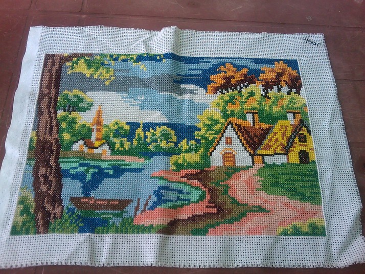 obraz je vyšitý křížkovým stehem,rozměr na šířku je 32cm a na výšku 23cm,cena je 150 kč.Info na bedderuskaa@centrum.cz