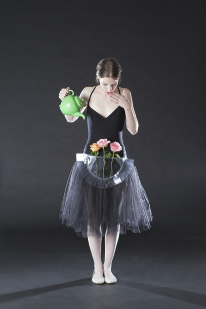 Vrstvená baletní sukýnka s křivolakou pasovou linií. Řasené vrstvy jemného tylu jsou našity na elastickém pruhu, který tvoří bokovou "minisukýnku".