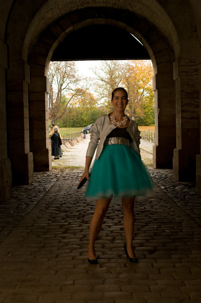Nejdřív kolem mě prošli tři koně, pak dva zamilované páry a nakonec malá holčička, která se zeptala maminky, proč se ta paní tak divně kroutí a jestli jí není zima - a pak povel fotografa zněl: Tvař se přirozeně:)))