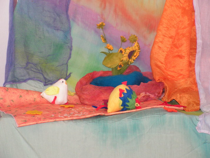 Vyráběla jsem jen kohoutka, slepička byla zakoupena před mnoha lety na waldorfském bazárku, jen jsem jí došila křidélka a nožky.