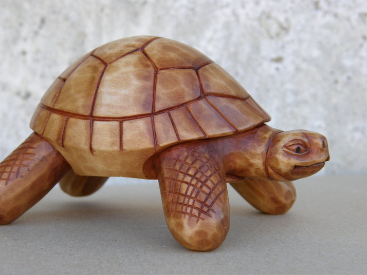 Želva vyřezaná z lipového dřeva. Mořená, voskovaná, jemně malovaná olejovými barvami. Může být použita jako dekorace, ale hlavně je určena k masáži těla...