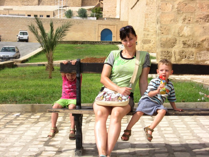 Sympatická Evička se svými dětmi a trikem ode mne na dovolené v Tunisku