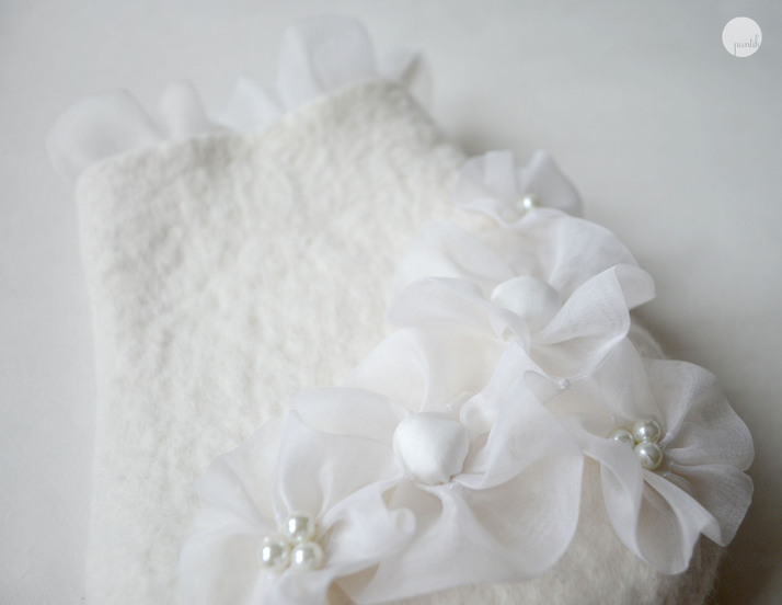 Květinky z hedvábné organzy a hedvábného saténu a skleněných voskovaných perliček.