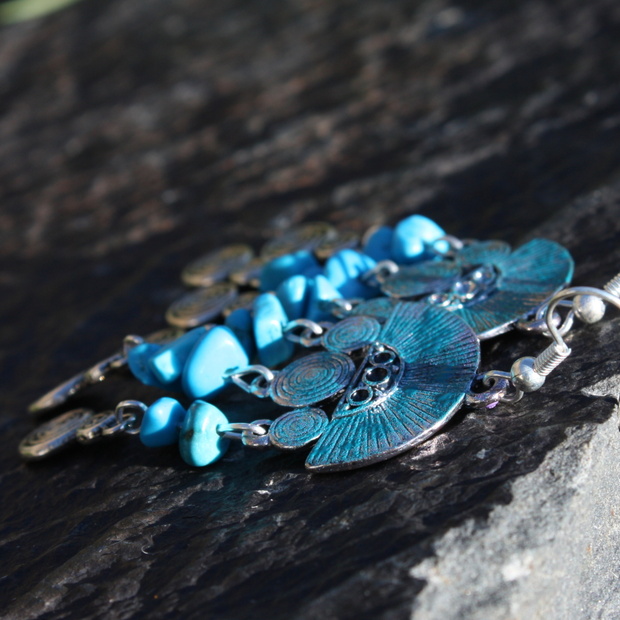 náušnice ze stříbrných bižuterních komponentů a zlomků tyrkenitu