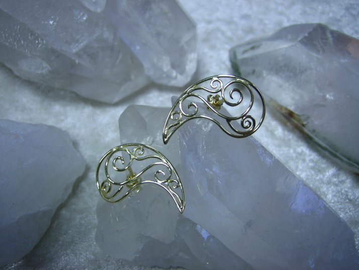 Naušnice ze zlata (585/1000), vyrobené technikou filigránu. ukázka mé starší práce