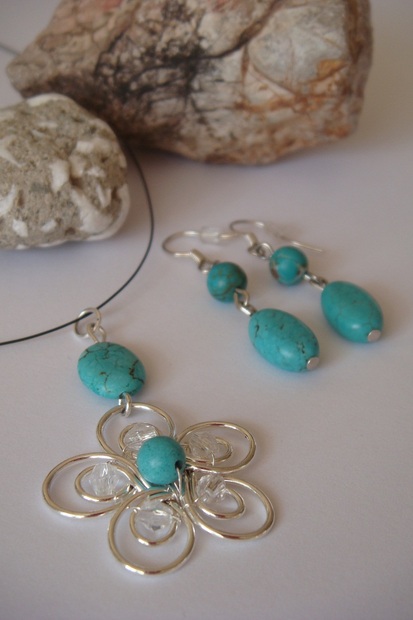Sada odrátkované kytičky a tyrkysů... nějakou dobu už okrašluje mě osobně :-).