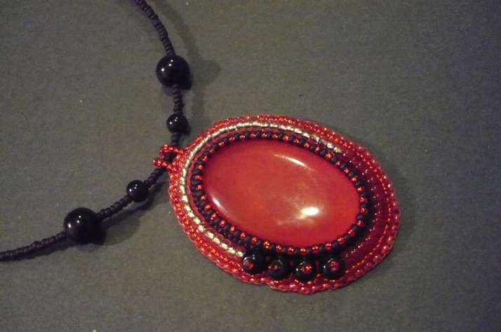 Červený s perličkami