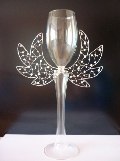 Skleněný svícen made by Pavla Miková, křídla jsou moje práce ;o)