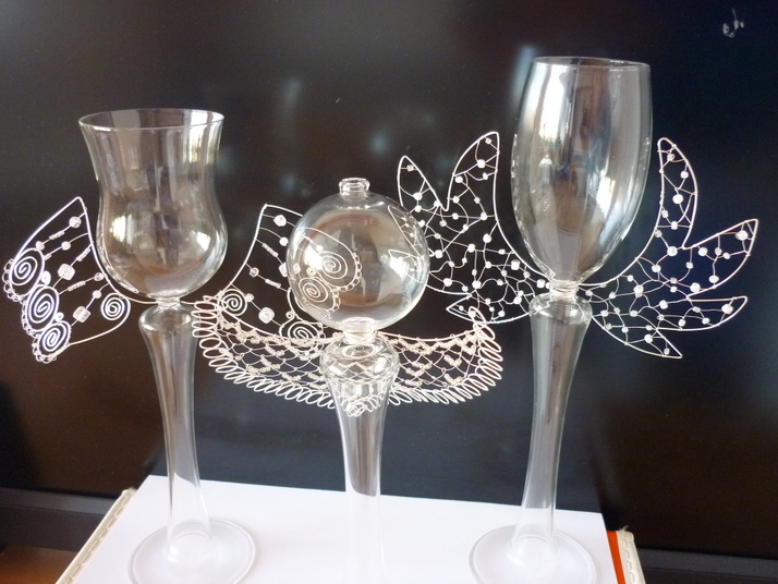 Skleněné svícny made by Pavla Miková, křídla jsou moje práce ;o)