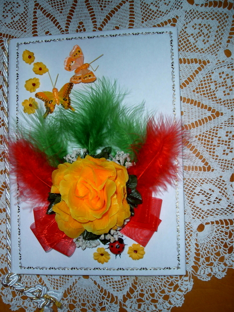 Tak takhle vypadají desky-přání pro moje milé lidičky. které mám moc ráda .Jsou individuální pro každého jiné zdobení, na obou stranách mají růžky a v nich je zasunutý kladívkový karton s mými veršíky-skládání je moje slabost.Verše jsou vždy sestaveny tak ,aby se dotýkaly konkrétní osoby a podle přání toho kdo si je objednává…….ukázky zde neuvidíte –verše jsou osobní a nikdy se neopakují.