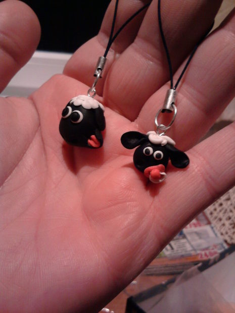 Vlevo hlava ovečky, vpravo hlava malého beránka Timmyho (vyrobila je moje mamka).