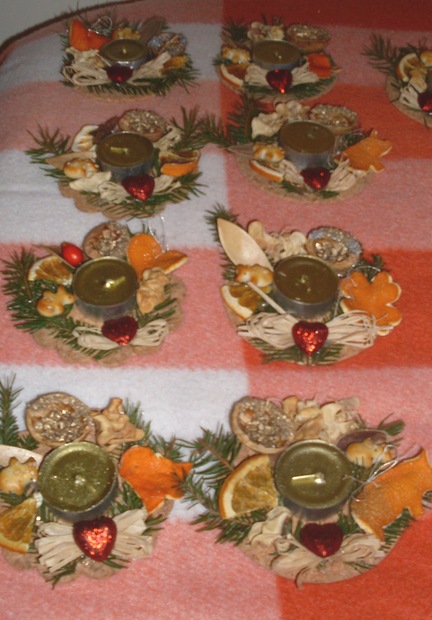 Dekorace na stůl maminkám - práce s dětmi ZŠ Petřiny Jih